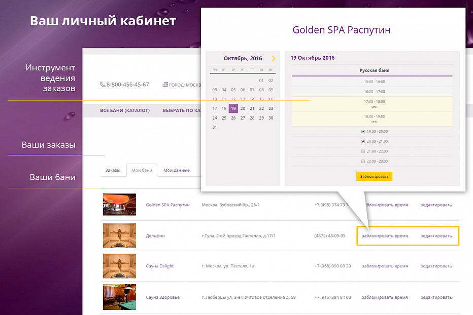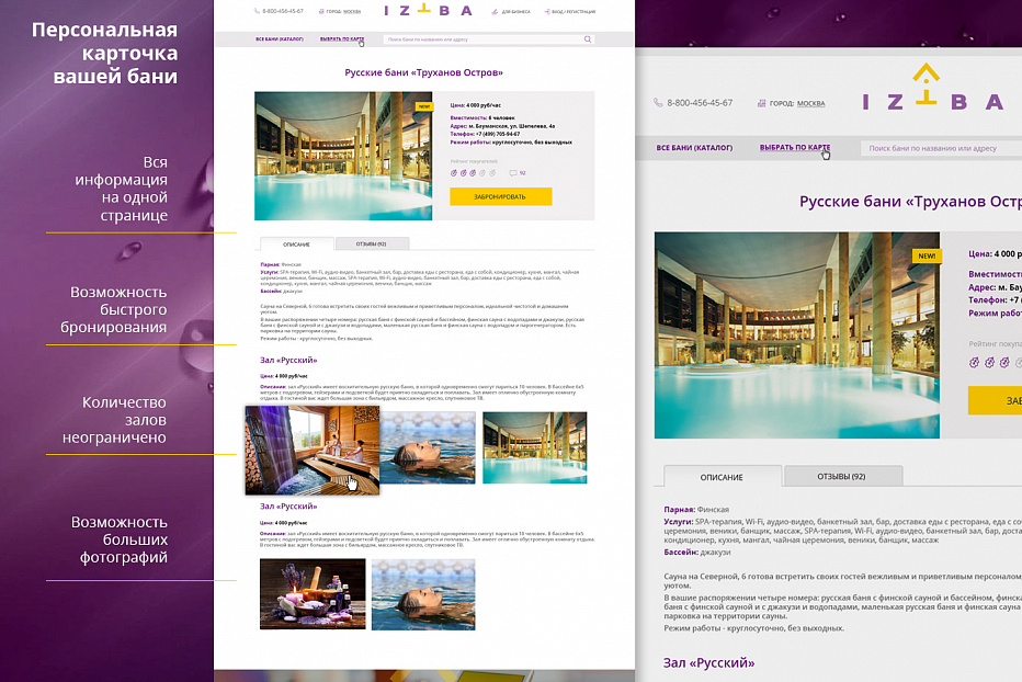 В ноябре состоялся запуск большого проекта – сервис бронирования бань и саун . Этот стартап сделан что называется «под ключ»: