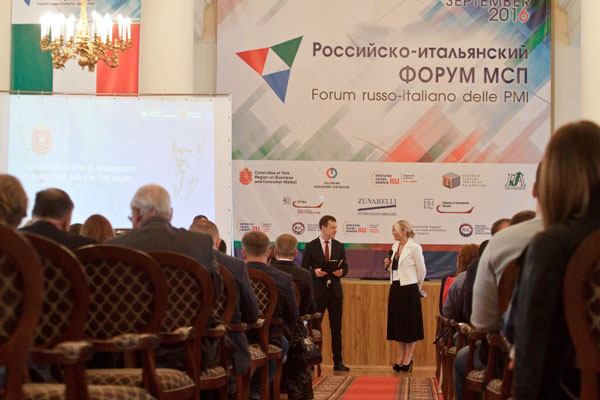 Выступление началось со слов заместителя министра экономического развития Тульской области Валентина Зарубина. В своем выступлении Валентин Зарубин отметил то, насколько важным в настоящее время остается развитие и поддержка малого и среднего бизнеса в России. Также речь коснулась и тульских предпринимателей, для которых 15 сентября 2016 года, в рамках государственной программы «Развитие малого и среднего предпринимательства в Тульской области», было запланировано проведение международного форума бизнесменов.