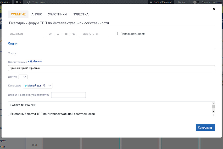 - Создание Шаблона бюллетеня для мероприятия, где нужны разные шаблоны.