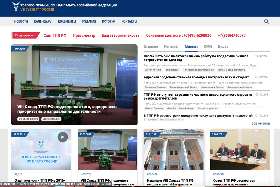 VIII Съезд ТПП РФ с участием делегатов от торгово-промышленных палат страны, коммерческих организаций, союзов, ассоциаций и других объединений предпринимателей-членов ТПП РФ, а также представителей Федерального собрания РФ, исполнительной власти, общественных организаций.