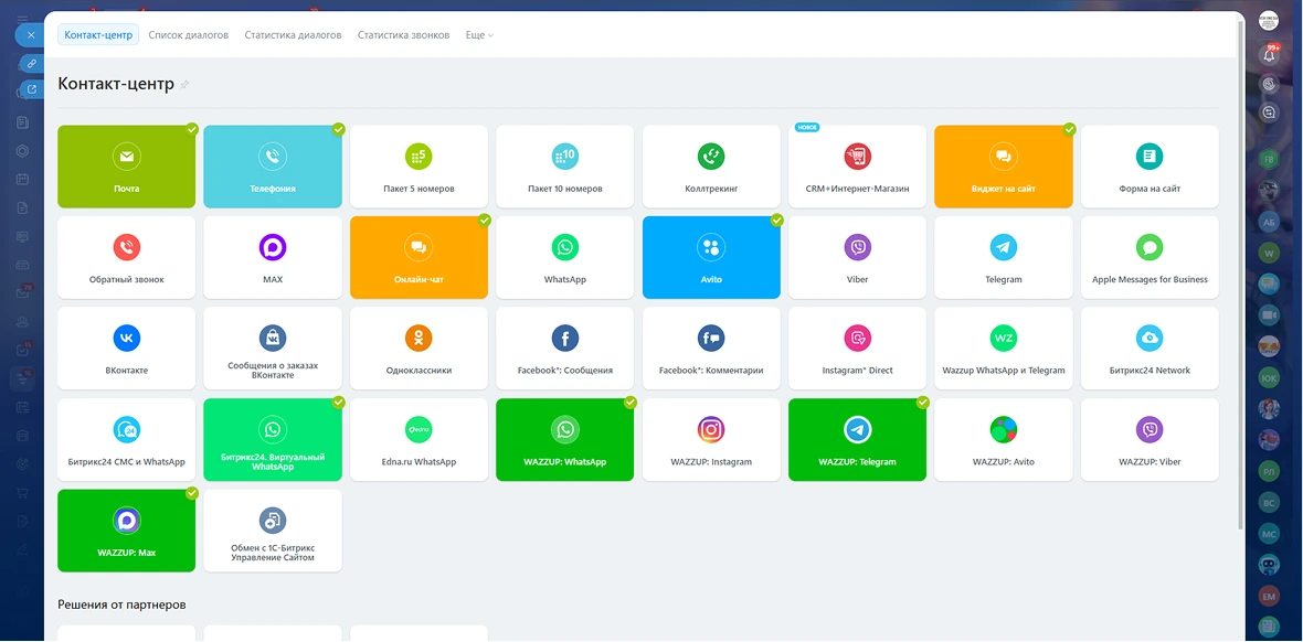 Мы подключили к Битрикс24 все каналы, по которым приходили заявки: Телеграм, MAX, онлайн-чат на сайте, телефонию «Дом.ру», электронную почту и Авито.