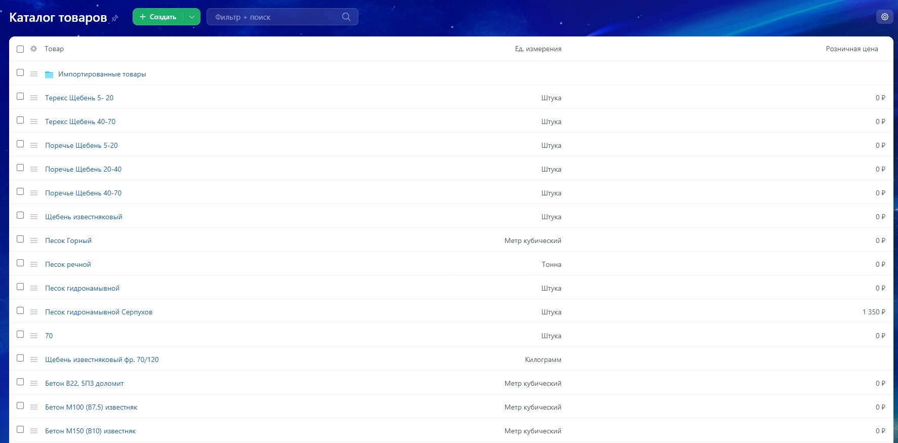 5. Также, произвели импорт товаров на портал клиента, для их учёта в сделках и автоматической подстановки в генерируемые документы.